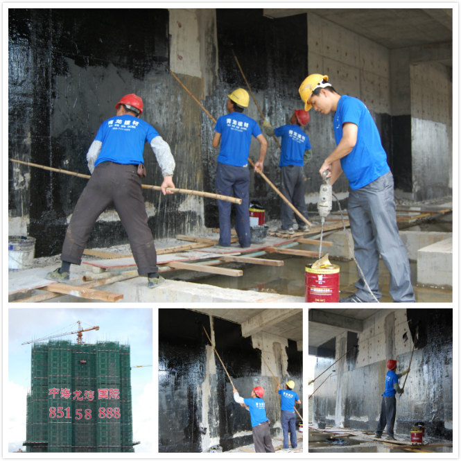 龍灣國(guó)際項(xiàng)目防水面積達(dá)5萬㎡,施工部位為地下室剪力墻與頂板,采用了青龍911聚氨酯防水涂料(CQ107)與聚乙烯丙綸,由于連續(xù)降雨,地下室長(zhǎng)期處于浸水狀態(tài),給施工帶來了一定難度,但青龍人認(rèn)真對(duì)待每一施工細(xì)節(jié),保證工期內(nèi)圓滿完成,目前地下室防水已經(jīng)接近尾聲,獲得了甲方的一致認(rèn)可。