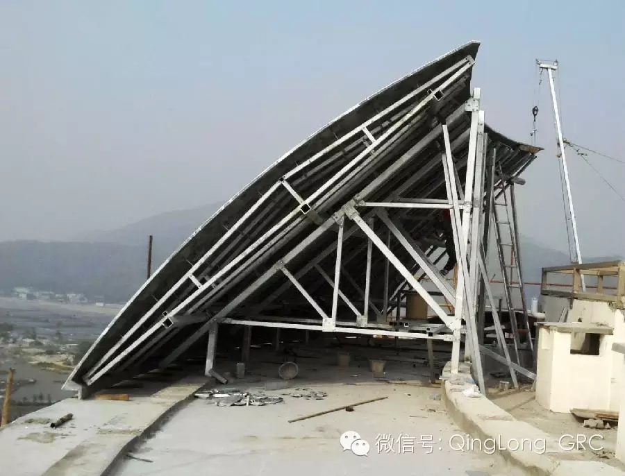 千億房企保利地產(chǎn)開發(fā)的海南保利半島1號項目,占地面積余畝,位于全球旅游熱點坐標(biāo)--中國·海南。青龍公司獨立承接了半島1號的GRC異型雙曲面板的制作和安裝分項工程。使用了25mm厚度灰水泥基質(zhì)幕墻造型板,邊上厚度達30mm。采用面積12000m²,內(nèi)置結(jié)構(gòu)鋼架和背負鋼架,最大規(guī)格L6000mm X W3000mm,一般體育館和港口及造型屋面使用較多,其紐帶型GRC屋面,可以實現(xiàn)設(shè)計師的設(shè)計靈感。