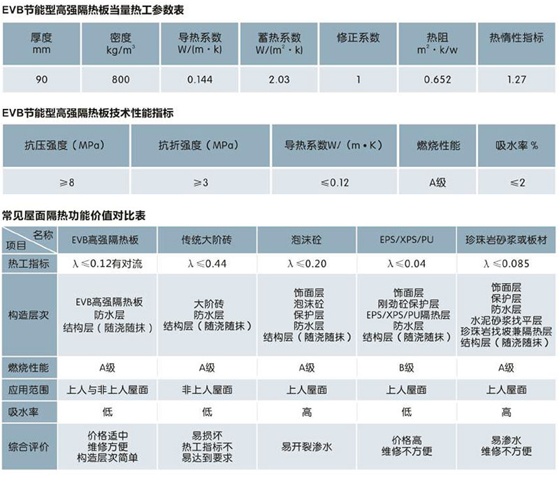 如果您有任何商品疑問,請撥打400-777-2203,有專人為您解答!EVB節(jié)能型高強(qiáng)隔熱板是由廣西青龍化學(xué)建材有限公司為響應(yīng)國家節(jié)能減排政策用于解決屋面隔熱問題而專門研發(fā)的產(chǎn)品,其專利號為(Z200920052358.3)。它是由飾面層、隔熱層、承重層構(gòu)成。