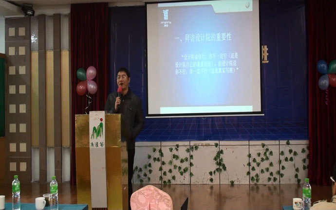 會(huì)議還邀請(qǐng)來(lái)?xiàng)钸M(jìn)舟先生作了“如何拜訪設(shè)計(jì)院”的專題講座,分享他跑設(shè)計(jì)院的心得以及注意事項(xiàng)。楊總從他自己的經(jīng)歷出發(fā),講述拜訪設(shè)計(jì)院的重要性,并詳細(xì)地解說(shuō)了設(shè)計(jì)院設(shè)計(jì)業(yè)務(wù)的流程,找出建材行業(yè)與他們業(yè)務(wù)的契合點(diǎn)。之后,楊總還為代理商們出謀劃策,講述如何建設(shè)設(shè)計(jì)院推廣團(tuán)隊(duì),如何進(jìn)行業(yè)務(wù)員的培訓(xùn),如何制定和實(shí)施工作計(jì)劃以及考核等問(wèn)題。