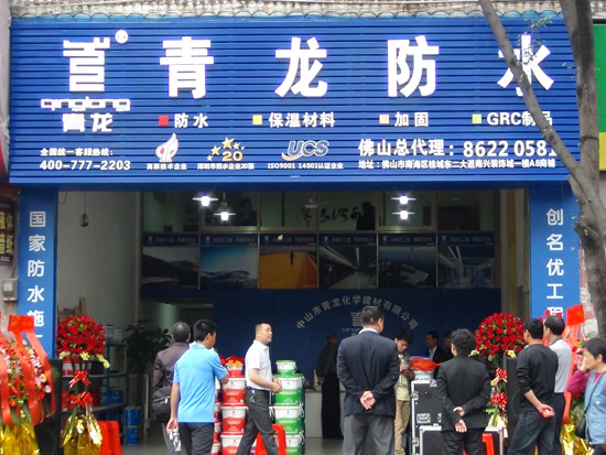 ?。翟拢慈?,伴隨著喜慶的民樂,熱鬧的鑼鼓,位于佛山市南海區(qū)桂城東二大道南興裝飾城一樓A8商鋪的青龍防水佛山總代理專賣店隆重開業(yè)。經(jīng)過精心的裝修,藍(lán)底白字的“青龍防水”門牌顯得格外顯眼,而店前的花籃也為開業(yè)慶典增添了節(jié)日的氣氛。青龍建材集團(tuán)董事長宋敦清、廣東省區(qū)域服務(wù)人員,以及一百多位防水業(yè)界嘉賓到場祝賀。