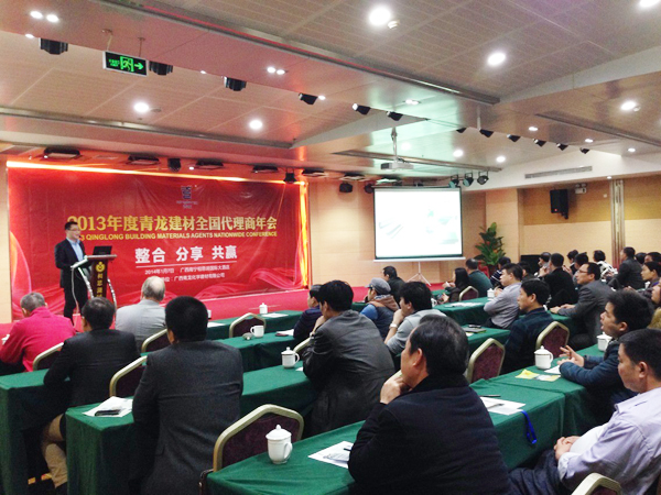 隨后外籍防水專家吉姆,青龍集團工程師羅兆學(xué)先生,外省營銷總監(jiān)王定中先生,網(wǎng)絡(luò)營銷經(jīng)理賀金龍先生分別上臺演講,與廣大代理商交流防水技術(shù),網(wǎng)絡(luò)營銷及2013年銷售,并展望充滿期待的2014年。