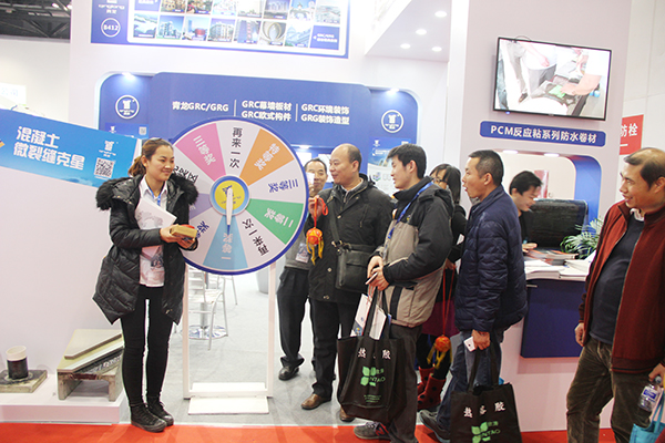 青龍展臺(tái)設(shè)計(jì)緊密圍繞當(dāng)前防水前沿"排防結(jié)合、剛?cè)嵯酀?jì)"防水系統(tǒng)治理新理念展開,明顯位置擺放了青龍受歡迎,也是防水性能好的兩大防水材料CQ101防水涂料和PCM防水卷材,同時(shí)設(shè)計(jì)精致的防水模型讓參會(huì)嘉賓對(duì)青龍防水材料的設(shè)計(jì)及施工直觀,一目了然,方便了客戶對(duì)防水系統(tǒng)的現(xiàn)場體驗(yàn)。青龍專業(yè)技術(shù)員也為嘉賓現(xiàn)場施工演示,解說,讓參會(huì)嘉賓感受到理論與實(shí)踐的兩重培訓(xùn)。許多參展商專程來到青龍展位參觀,洽談合作共贏事宜。