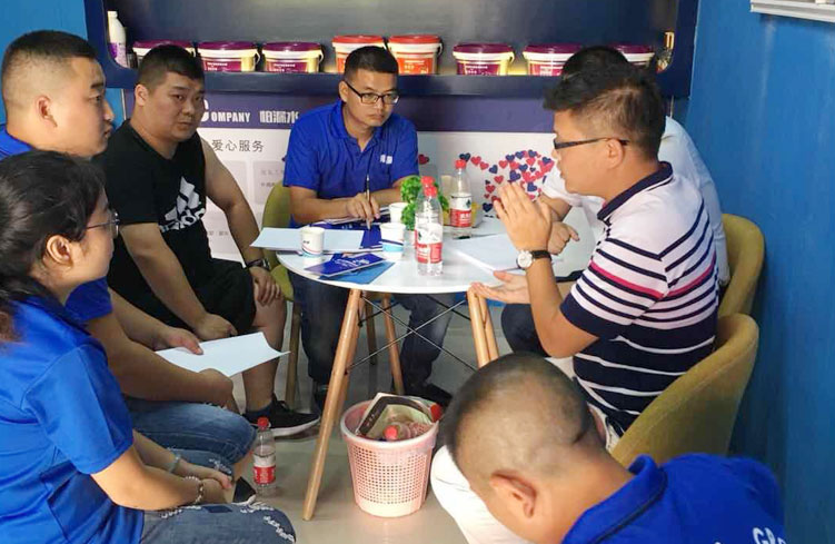 開(kāi)業(yè)期間,周總還特別組織召開(kāi)了青龍家裝防水補(bǔ)漏新產(chǎn)品發(fā)布會(huì)。青龍賀總近距離與大家分析、把脈防水堵漏領(lǐng)域現(xiàn)狀,并就近年防水市場(chǎng)新機(jī)遇、新產(chǎn)品、新技術(shù)、新理念進(jìn)行了分享。他強(qiáng)調(diào),2018年是進(jìn)入建筑修繕堵漏領(lǐng)域最好的時(shí)機(jī),先進(jìn)入將獲得更多的優(yōu)勢(shì),然后,簡(jiǎn)單介紹青龍?zhí)厣S修堵漏產(chǎn)品的優(yōu)勢(shì),為大家指明了方向,也增強(qiáng)了大家做建筑修繕的信心。