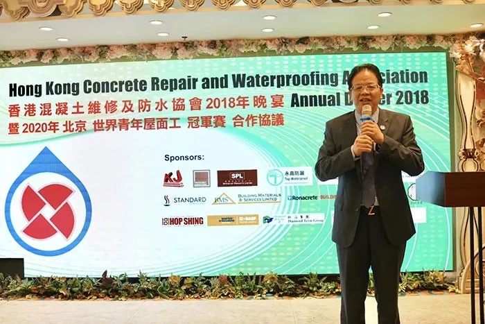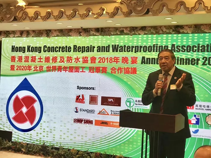 9月13日,值香港混凝土維修及防水協(xié)會(huì)(以下簡(jiǎn)稱HKCRWA)2018年會(huì)及成立第三十二周年紀(jì)念晚宴之際,兩岸四地(中國(guó)大陸、中國(guó)香港、中國(guó)澳門、中國(guó)臺(tái)灣)防水協(xié)會(huì)及相關(guān)領(lǐng)域領(lǐng)導(dǎo)人、嘉賓在香港九龍新港中心濟(jì)濟(jì)一堂,就分別組團(tuán)參加2020年北京第28屆世界青年屋面工冠軍賽等事宜達(dá)成共識(shí)。