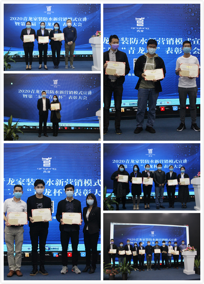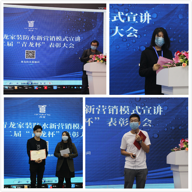 青龍公司董事長宋敦清、營銷總監(jiān)賀金龍、家裝防水營銷總監(jiān)于超軍、質(zhì)量總監(jiān)張科、招商總監(jiān)王濤濤、企劃經(jīng)理楊翠琴、行政經(jīng)理榮梅香以及青龍家裝事業(yè)部同仁現(xiàn)場參加了此次表彰,并且大會還再次實現(xiàn)了與代理商網(wǎng)絡(luò)同步直播,使青龍新營銷模式得到了及時傳遞。
