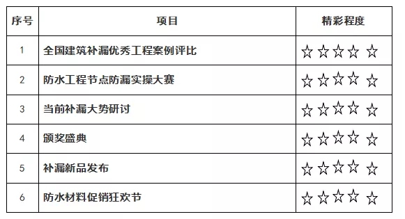 大賽上,來自全國(guó)的防水師傅、技術(shù)人員或老板,聚集一堂,防水師傅參加建筑節(jié)點(diǎn)防漏實(shí)操大賽,技術(shù)人員或老板分享優(yōu)秀補(bǔ)漏工程案例,并能聆聽成功人士的經(jīng)驗(yàn)和專家點(diǎn)評(píng),有助于你總結(jié)他人的經(jīng)驗(yàn),更好地結(jié)合個(gè)人實(shí)際情況,開創(chuàng)屬于自己的事業(yè)。