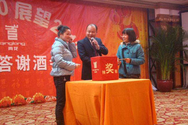 會上,青龍公司重點表彰了優(yōu)秀代理商代表和企業(yè)優(yōu)秀員工,其中對廣西青龍公司曾知博經(jīng)理個人銷售管理績效獎金高達12.8萬元,曾總發(fā)表感言說,青龍公司是個一個重信譽,講誠信,有實力的企業(yè),非常感謝青龍能給自己這樣一個實現(xiàn)自我價值的平臺,并表示愿意和廣西青龍廣大同仁一起努力拼搏,2011年再創(chuàng)輝煌。