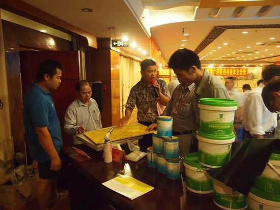 在近3個(gè)小時(shí)的推廣會(huì)中,廣西青龍中區(qū)域經(jīng)理黎世鷹以廣西玉林的建材市場的現(xiàn)狀為例,為大家解析了建材行業(yè)未來的發(fā)展前景,并就青龍建材公司“一個(gè)品牌,四門生意”的招商加盟政策做了詳細(xì)的介紹。青龍集團(tuán)防水保溫技術(shù)總工程師徐新生則深入地剖析了青龍牌新的型反應(yīng)交叉膜自粘防水卷材、防水涂料(青龍牌防水密封涂料)、EVB高強(qiáng)保溫隔熱板等產(chǎn)品的特點(diǎn)及應(yīng)用,幫助與會(huì)者更好地了解青龍建材的主推產(chǎn)品。而廣西青龍GRC技術(shù)工程師李運(yùn)旺為參會(huì)者進(jìn)行講解GRC歐式構(gòu)件生產(chǎn)、技術(shù)、認(rèn)識(shí)誤區(qū)、前景等內(nèi)容。此次技術(shù)交流會(huì)全面、深刻,使得參會(huì)者對(duì)青龍企業(yè),招商計(jì)劃,產(chǎn)品技術(shù)等問題有了進(jìn)一步的了解,也受到了在場人員的贊賞。