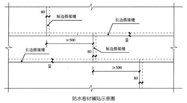 | 原因分析 | 1、防水卷材鋪貼時未彈線,鋪貼不順直,搭接寬度不夠。 2、未嚴格按施工工藝進行施工,卷材搭接部位未粘貼牢固,膠粘、自粘卷材搭接縫受污染、未壓實粘牢,熱熔卷材未充分熔融溢出瀝青條封口 |