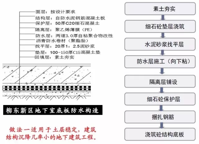1、細(xì)石砼墊層厚度一般不小于100mm,鋼筋砼結(jié)構(gòu)底板厚度一般不小于500mm,防水層反粘于鋼筋砼結(jié)構(gòu)底板更穩(wěn)定、牢固,防水層與鋼筋砼結(jié)構(gòu)沉降一致;