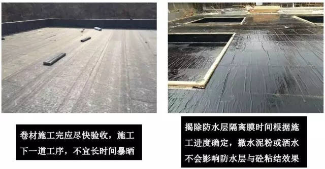 因有細(xì)石砼對防水層的保護(hù),支模、捆扎鋼筋(焊接)等工序可以有效的避免做法二中防水層的磕破、穿刺、熔穿等。