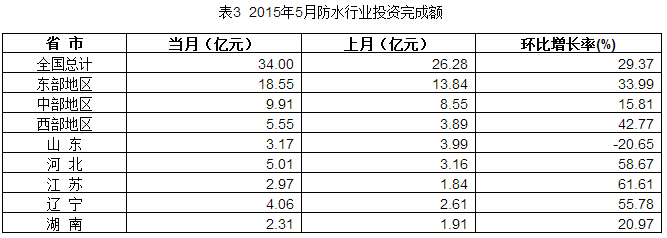 5月份,防水行業(yè)投資完成額34.00億元,同比增長(zhǎng)29.37%。