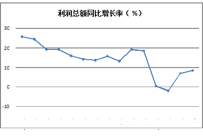 圖1 2014年至今行業(yè)利潤(rùn)總額同比增長(zhǎng)率變化情況