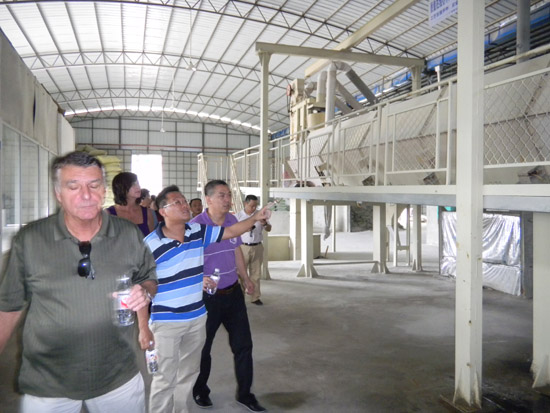 考察團(tuán)一行先后參觀考察了青龍海南國際會(huì)展中心工地、青龍廣西公司、青龍中山公司總部、青龍廣西保溫砂漿生產(chǎn)基地、青龍中山涂料生產(chǎn)基地、青龍中山GRC生產(chǎn)工地、青龍研發(fā)中心(廣西、中山兩處)等。格雷先生對(duì)我公司的設(shè)備和產(chǎn)品給予了肯定,并對(duì)我公司拓展國外的業(yè)務(wù)提出了寶貴的意見,表示青龍完全有實(shí)力開一條生產(chǎn)線生產(chǎn)美國研發(fā)的這種新特材料,并當(dāng)場(chǎng)簽訂了代理協(xié)議,就合作項(xiàng)目交換了意見,目前雙方公司正在積極籌辦中。
