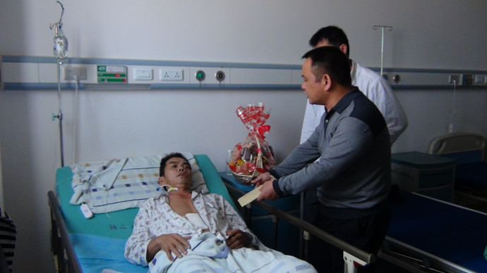廣西青龍工廠員工隆云錦同志不幸遭遇車(chē)禍,牽動(dòng)了全體青龍人的心。11月2日上午,廣西青龍總經(jīng)理曾知博帶領(lǐng)青龍各級(jí)各部門(mén)領(lǐng)導(dǎo)代表青龍公司全體人員看望了在車(chē)禍中受傷住院的隆云錦同志,并送上慰問(wèn)金。