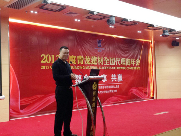 隨后外籍防水專家吉姆,青龍集團工程師羅兆學先生,外省營銷總監(jiān)王定中先生,網絡營銷經理賀金龍先生分別上臺演講,與廣大代理商交流防水技術,網絡營銷及2013年銷售,并展望充滿期待的2014年。